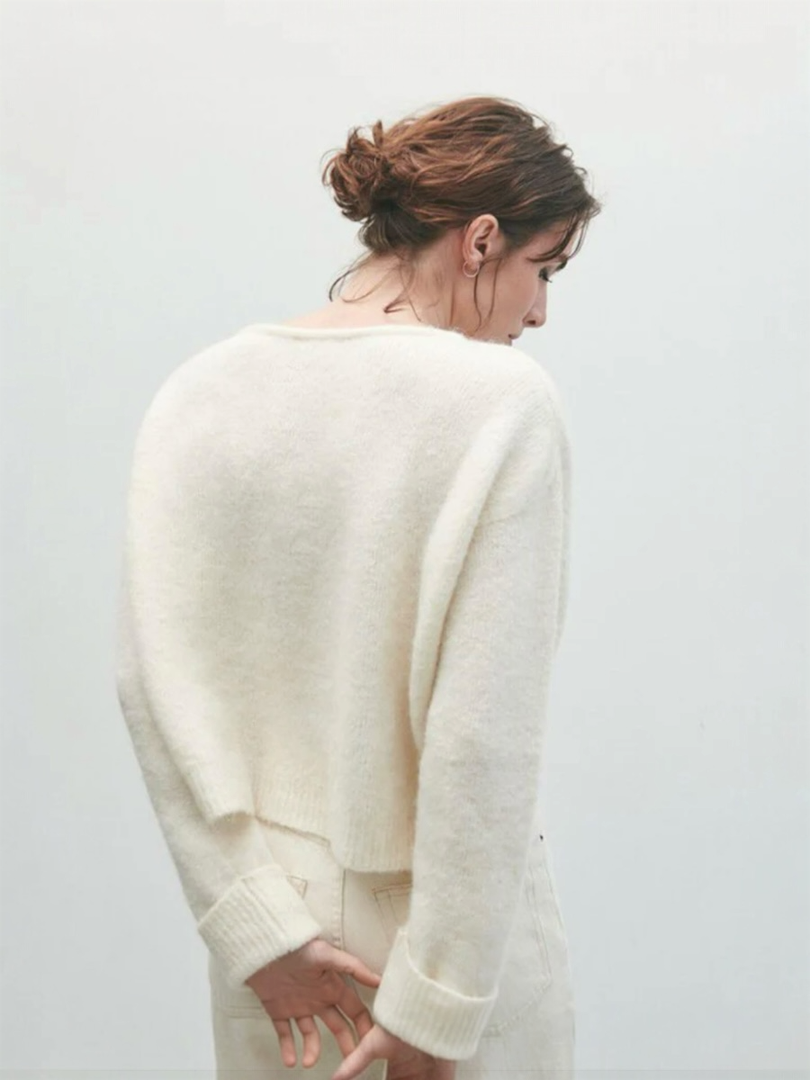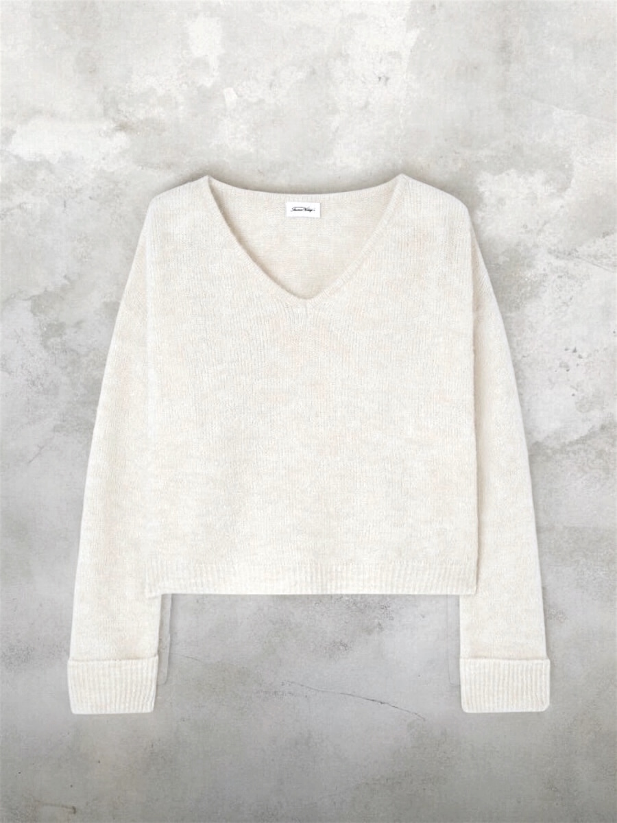 Super zacht, comfy en super stylish. In deze heerlijke nonchalante trui van American Vintage steel je de show. De trui is gemaakt van een heerlijk zachte alpaca blend en heeft een nonchalante fit met ronde vleermuis-mouwen en een mooie halslijn.