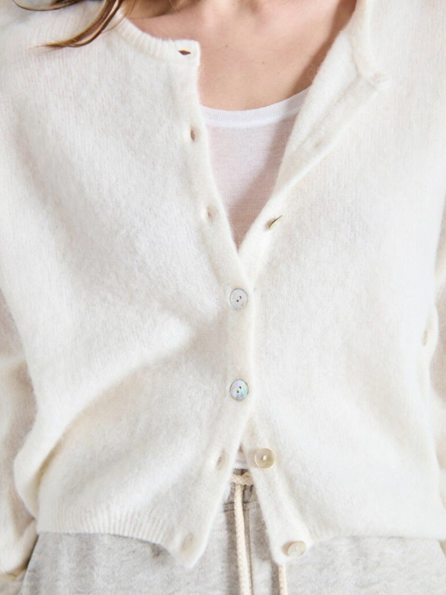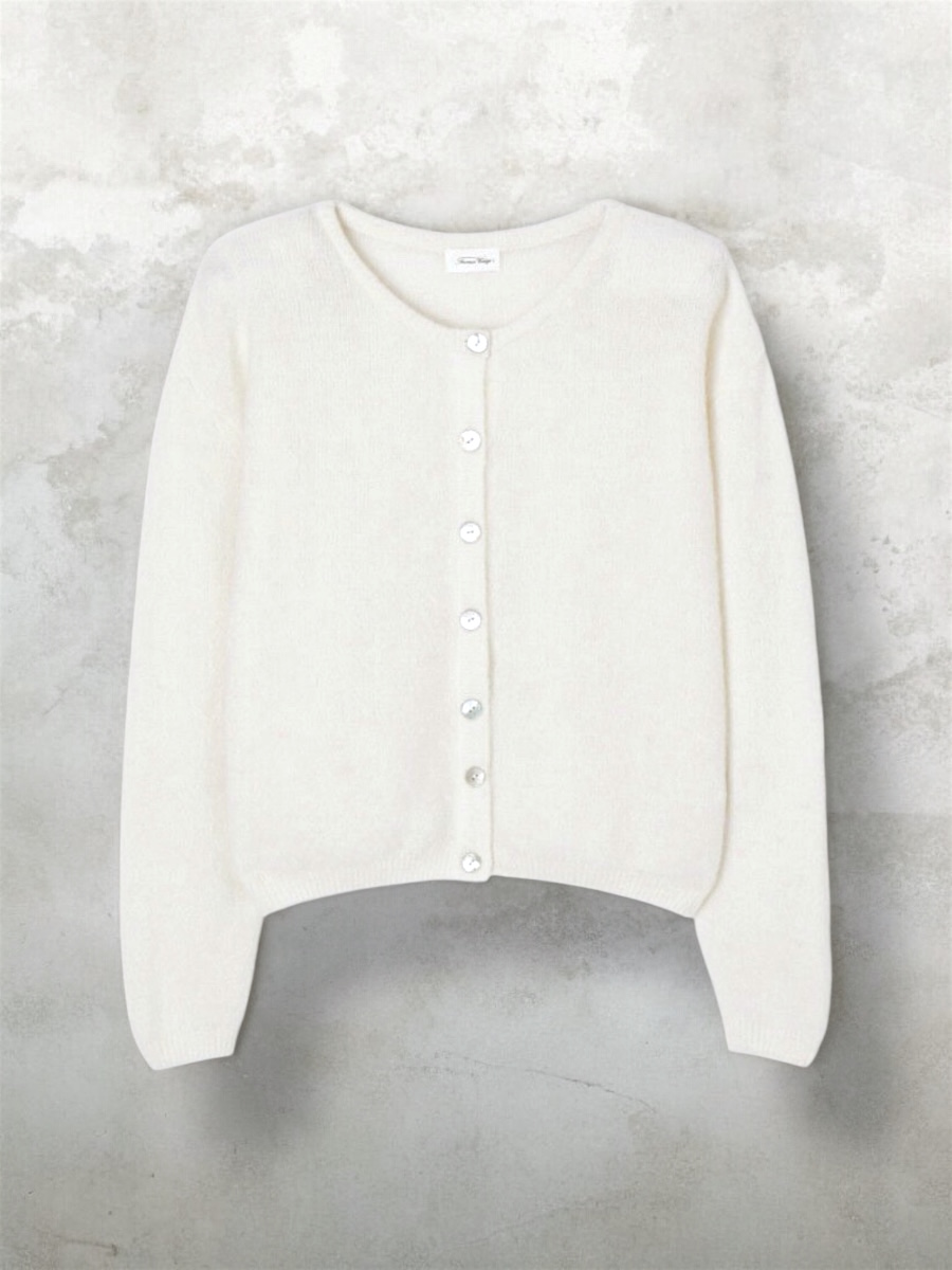 Het prachtige Vitow vestje van hoogwaardige alpaca wol is een tijdloos item uit de American Vintage collectie. Met haar parelmoer knopen en licht ronde, kortere fit heeft het een moderne uitstraling en past het bij vrijwel elke outfit.